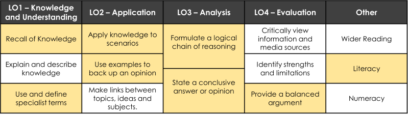 I have also given a list of key terms where the students get a point each time they use the term appropriately to help with learning and using specialist terminology.